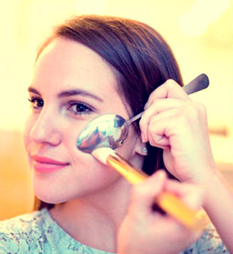 Sólo tienes que colocar la cuchara sobre tus pómulos, exactamente debajo de los ojos de manera que encaje perfectamente. Justo en esa zona, donde está la cuchara va el rubor o blush y por debajo puedes colocar un polvo más oscuro (color café) para enmarcar el rostro y adelgazarlo; como se muestra en la imagen.