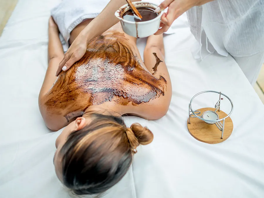 Técnicamente, en un spa, es un masaje que consiste en extender por la zona una capa muy fina de chocolate previamente fundido. Después se tapa con un plástico y se coloca calor durante algunos minutos. Posteriormente se quita el chocolate, se seca la piel y se masajea con una crema a base de aceites de cacao. Este masaje se realiza en todo el cuerpo, incluso cara y cabello.