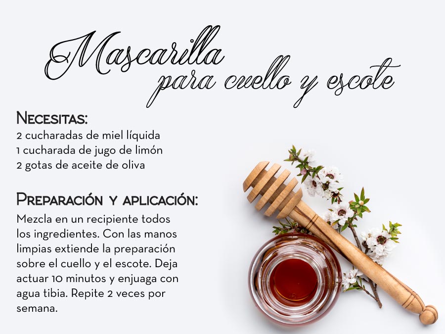 ¿Por qué una mascarilla de miel para esta zona del cuerpo? Según la doctora Isabel González, licenciada en medicina general y máster en medicina estética, la piel del cuello y el escote es una zona vulnerable, pues es fina y se deshidrata con rapidez.