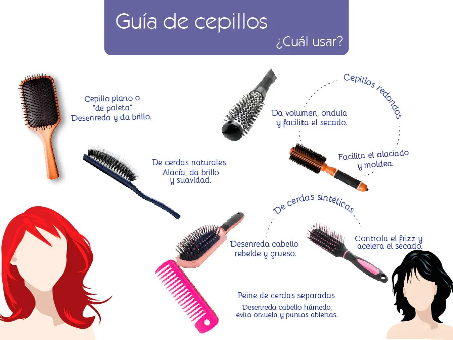 La oferta es grande: los hay redondos, planos, de cerdas naturales, de cerdas sintéticas, cerdas abiertas y hasta algunos peines que nos pueden ayudar.
