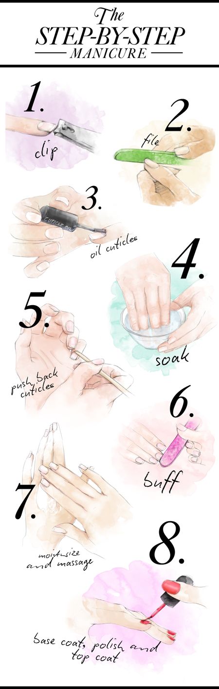Aquí abajo te dejo una imagen en donde se muestran los pasos para realizar una manicura en casa.