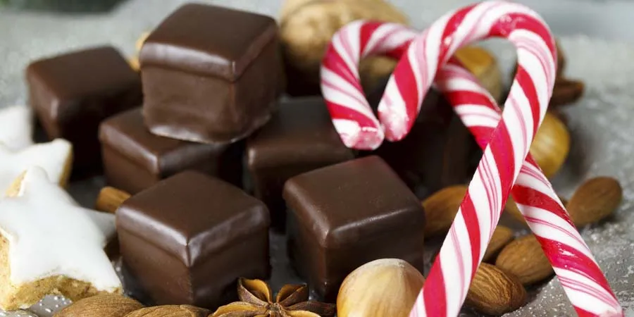 Otros dulces navideños clásicos son los bastones de caramelo rojo y blanco procedentes de Alemania y famosos en los países anglosajones como Estados Unidos de Norteamérica. Además de comerse, decoran coronas y árboles de Navidad.