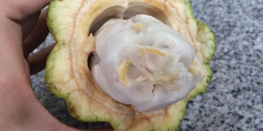 Al probar la “baba del cacao”, es decir el mucílago recién sacado de su mazorca, la boca sabe que prueba la tierra, las flores y los árboles de la región. De golpe, las hierbas y esa sensación fresca pero con consistencia como la de la guanábana son el inicio de lo que después será un chocolate. Esto cambia por completo la perspectiva de esas golosinas que no recuerdan al producto original.