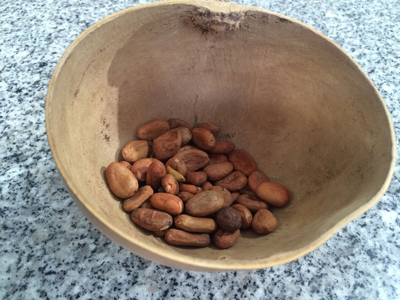 Así, secos o tostados, los granos ya crujen al morderlos, ya son más sedosos, ya tienen notas ahumadas y similitudes con el café y las avellanas. Después de moler, con las manos, se va obteniendo una pasta que ya recuerda al mole en la que hay mayor acidez. Al agregar azúcar, el postre ya está presente.