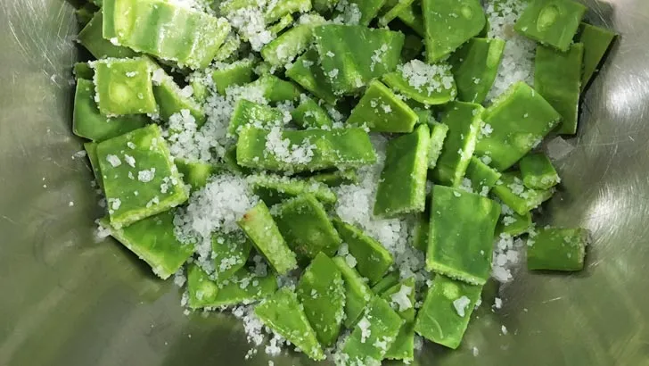 - Agrega sal de mar hasta que se cubran todos los nopales.