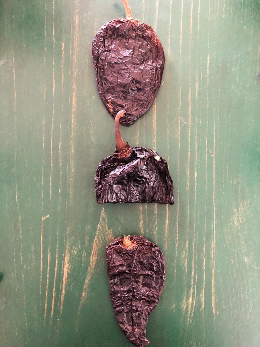 Esta preparación que lleva chile ancho (que esté flexible, es decir, que esté fresco), tostadas o tortillas (que se pueden aprovechar cuando ya no funcionen para comerse para “taquear”), cacahuates naturales, galletas Marías o de animalito (mejor estas segundas, pero queda bien con ambas), canela (se usó una de Cuetzalan), pasitas, chocolate, pollo cocido, el caldo de esta ave (que hasta queda mejor con guajolote o cerdo, sí hay alguno de los dos), granos de café y hasta un chorrito de mezcal al final.