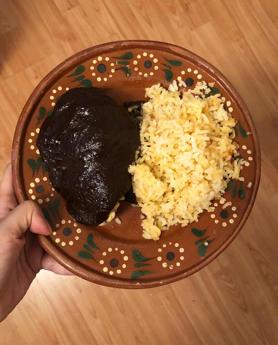 Hacer mole no solo es un proceso mecánico: es una acción colectiva, es reunirse a prepararlo con los amigos o la familia. Este platillo que se alimenta del güiri güiri, de unas cuantas cervezas, de lo que escuchas mientras lo haces y de lo que resuelves si te equivocas en algo. También narra que lo sirven el 1 y 2 de noviembre, en la celebración de Todos Santos y Fieles Difuntos (como el que te platiqué de Marcelina en Cuilápam de Guerrero hace tiempo).