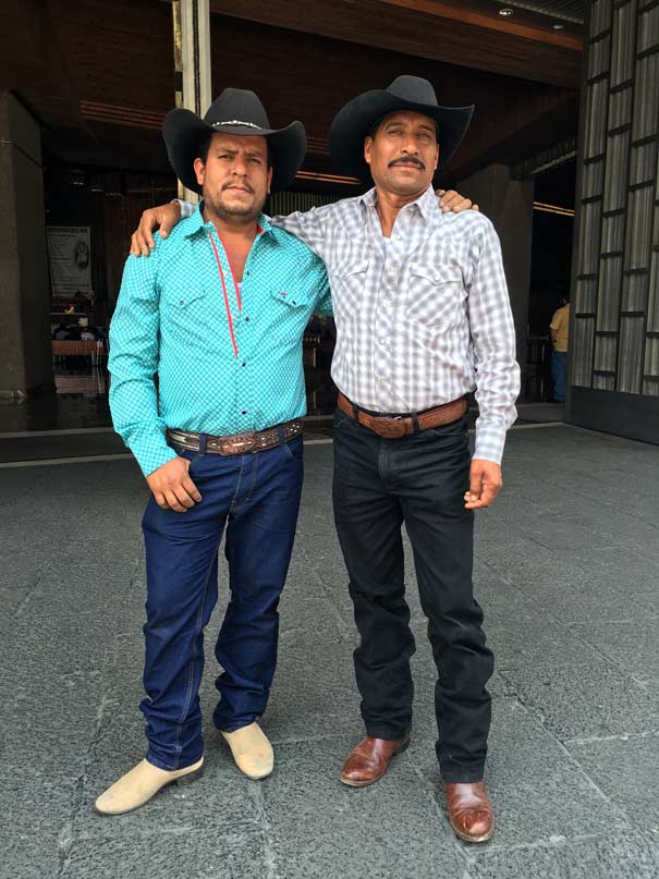 Leonardo Rojas y Jesús Díaz son compadres y su hogar es Potrero en Sola de Vega, Oaxaca. Visten camisas a cuadros, cinturón y botas de piel. Sus manos son de trabajo, eso no los espanta. Desde chamacos iban a la escuela juntos. Sus papás son parientes, y es que el rancho es pequeño. Todos se conocen y comen mole rojo, carnitas o barbacoa para las fiestas comunitarias. Ambos son maestros mezcaleros y ninguno de los dos conocía la Ciudad de México. Es abril de 2016, es su primera vez en esta capital.