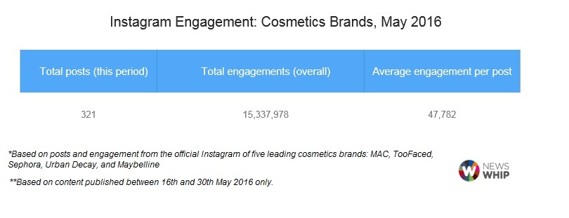 News Whip realizó un estudio a las 5 marcas de cosméticos más reconocidas (Mac, Too Faced, Sephora, Urban Decay y Benefit) para checar la participación de ellas en Instagram y así tener una idea precisa sobre qué tanto significa para estas empresas el uso de los influencers.