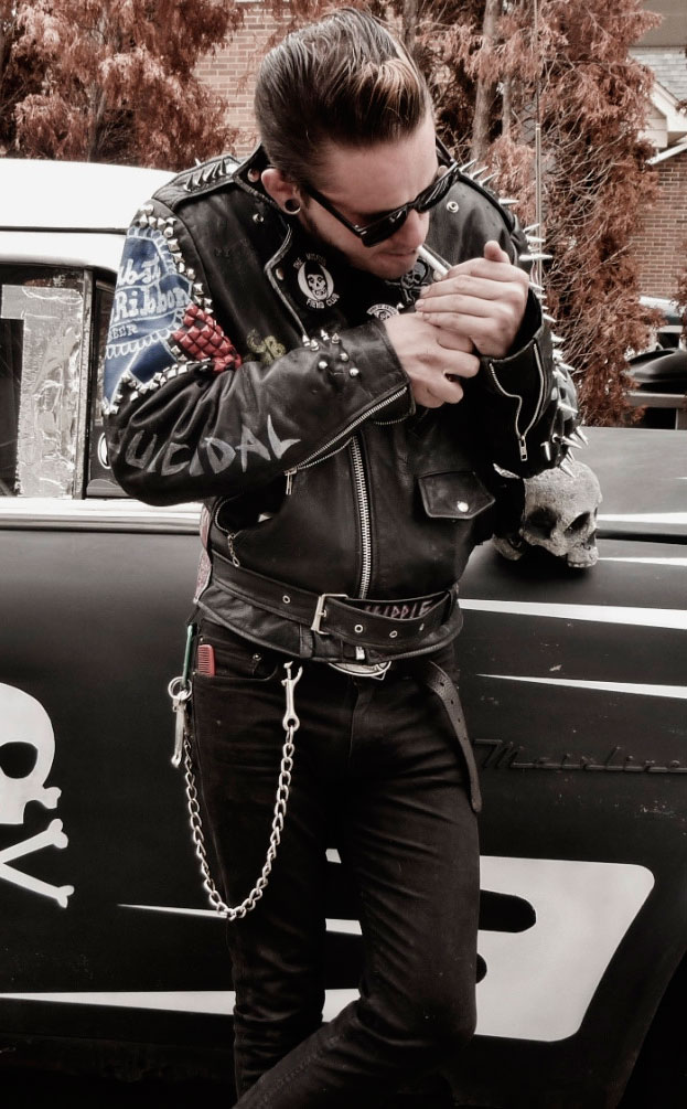 Elige pantalones entubados y camisas a cuadros arremangadas. Si quieres algo más formal, usa tirantes, estos eran muy famosos en la época de los 50. La chaqueta de piel es un infaltable y las gafas oscuras también.