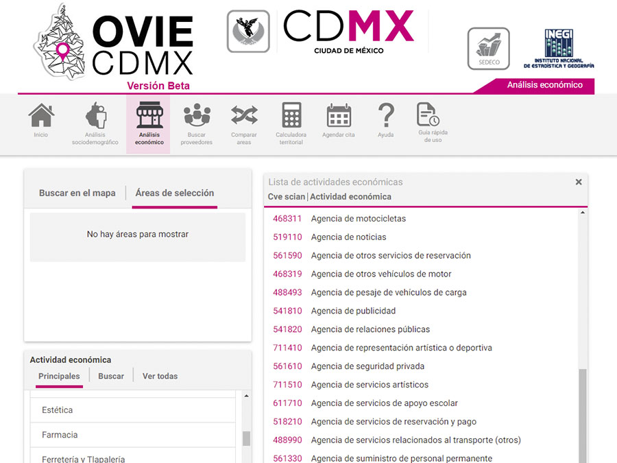 También puedes acercarte a las plataformas digitales que hay en la Ciudad, por ejemplo la Oficina Virtual de Información Económica (OVIE), donde encontrarás información geográfica, datos sociodemográficos y urbanos, así como datos económicos de la Ciudad de México.