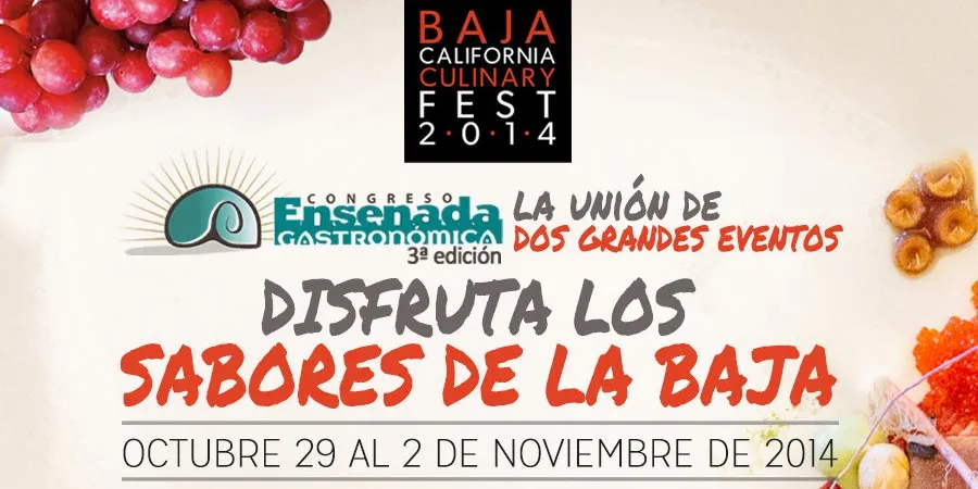 El Baja California Culinary Fest y Ensenada Gastronómica se realizarán el miércoles 29, jueves 30 y viernes 31 de octubre y sábado 1 y domingo 2 de noviembre de 2014.