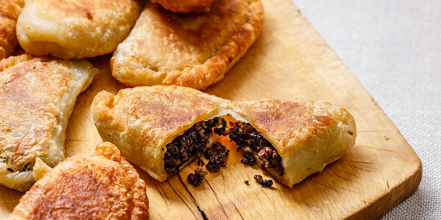 El original es de papa con carne molida. A la fecha hay muchísimas variedades dulces y saladas, por ejemplo de mole verde, rajas con queso, salchicha o los de manzana o crema pastelera.