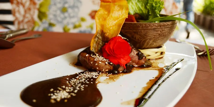 Otro que te recomiendo es el mole de tamarindo con salmón, que se sirve acompañado con verduras salteadas. Ofrecen también el mole de hongos con pescado blanco.