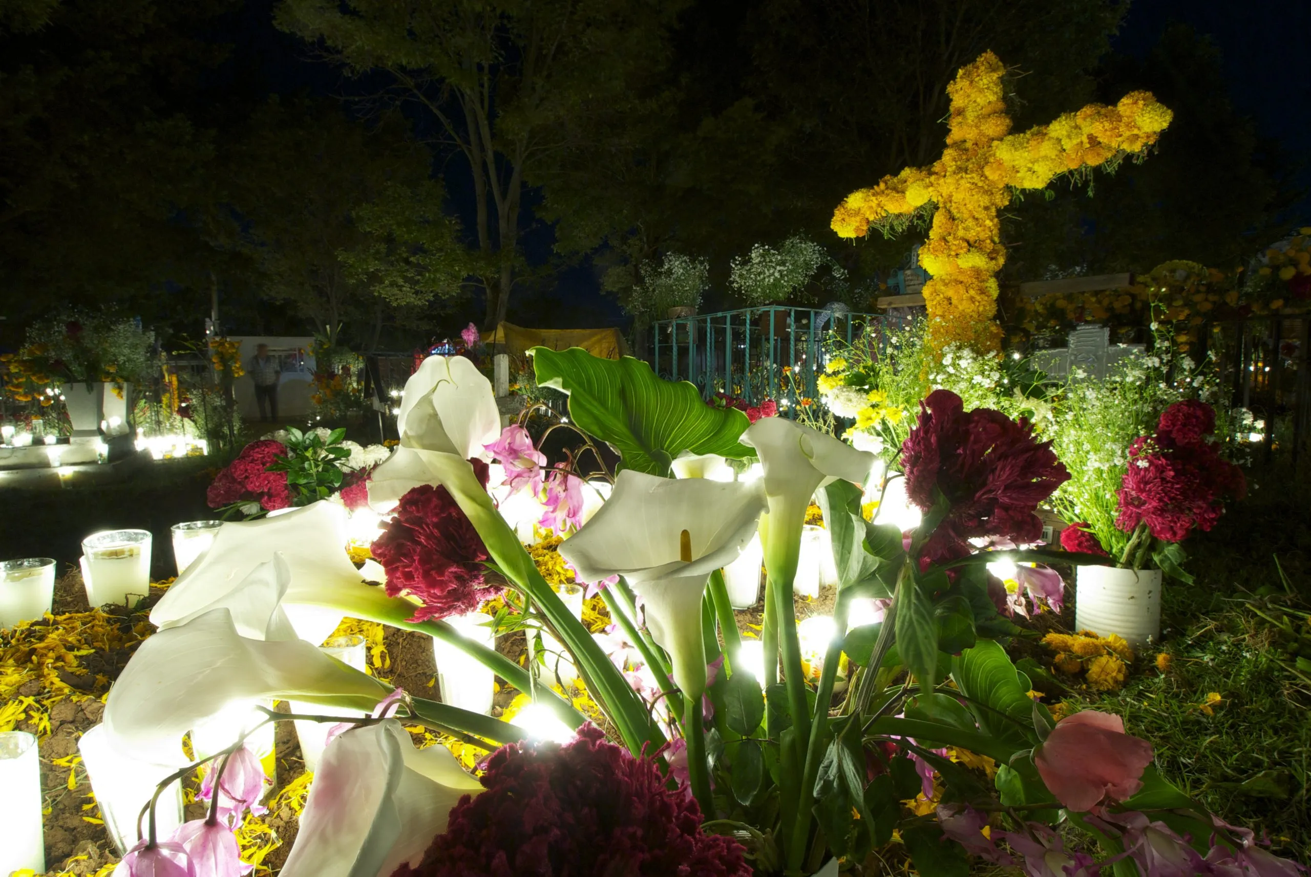 Primero, reciben a los niños, los angelitos como les llaman, les dan tamales de ajonjolí y dulces mientras les cantan; al día siguiente llegan los mayores guiados por el camino fosforescente tapizado de hojas amarillas de cempasúchil.