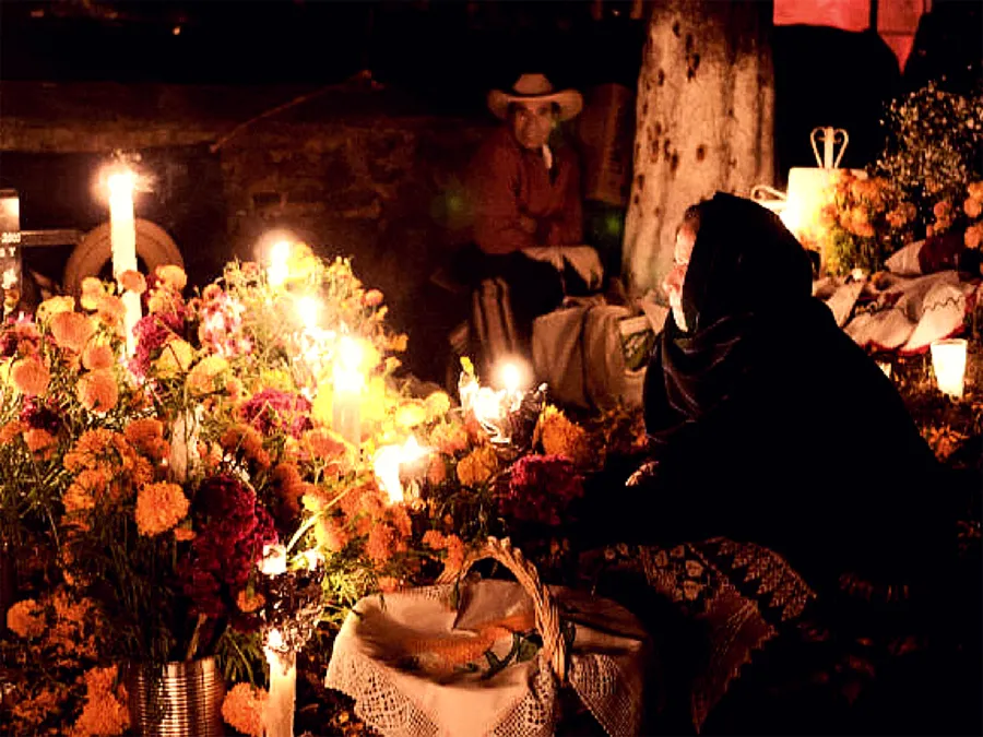 Por la noche las campanas de la iglesia repican anunciando la llegada de los difuntos, mientras que en las calles podrás encontrar todo tipo de puestos ofreciendo pan de muerto recién horneado, flores, inciensos, calabazas artesanales, veladoras y golosinas.