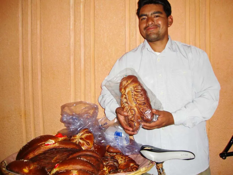 Precisamente, el pan de muerto oaxaqueño es distinto al de otras localidades pues está hecho a base de anís, yema de huevo, vainilla y ajonjolí, y puede tener rostros plásticos en la parte superior para representar a los difuntos (como el de la foto que ilustra este texto) o simplemente ser en forma de redonda.