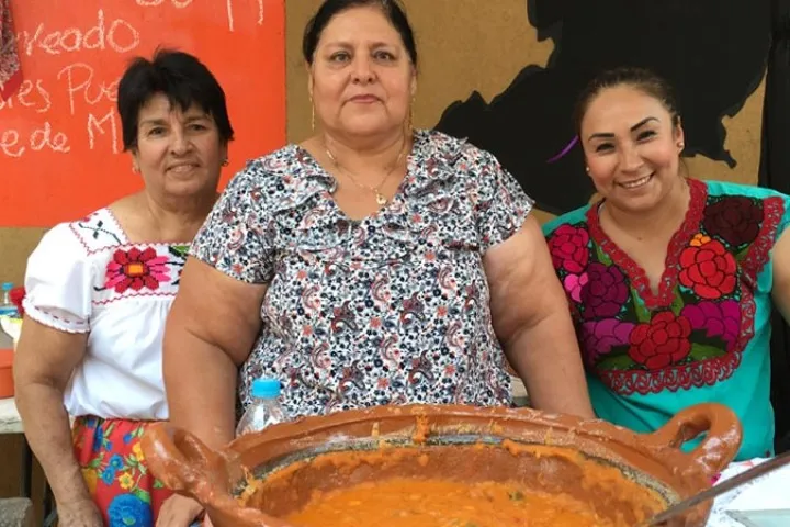 Lucila Estrada y José Cornejo son originarios de San Lucas en Tierra Caliente, Michoacán. Ya había probado esta maravilla en ediciones anteriores del festival pero debo recordarte que es único en su tipo y me recuerda a esos platos de la India o Pakistán que incluyen este seductor fruto. El mango verde se aprovecha en este guisado que lleva chile guajillo y para el cual no existe etiqueta: ¿acaso no es maravilloso chupar el hueso para quitarle su “carnita”? Esta vez solo vi a la señora Lucila quien es célebre por sus exquisitos frijoles puercos y llevan ingredientes como longaniza, queso y puro amor.