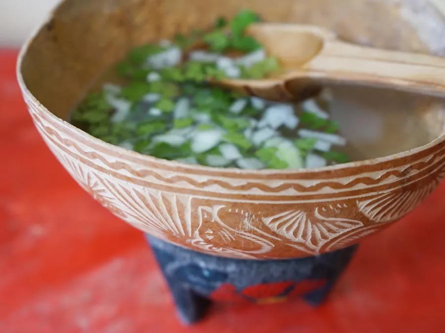 Reyna cuenta que esta delicia líquida se hace con agua (cuando iban al manantial de ahí la tomaban), limón, cilantro, sal y cebollas picadas, y se suele preparar los días que se trabaja en el campo, durante la cosecha o el cultivo de maíz.