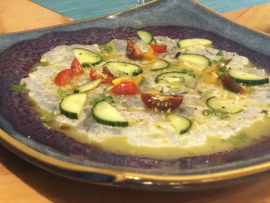 Este cocinero usó los camarones del Pacífico de la marca Del Pacífico Seafoods, que se capturan de manera sustentable con el método de suripera en bote de vela. Pronto te contaré más de este interesante tema.