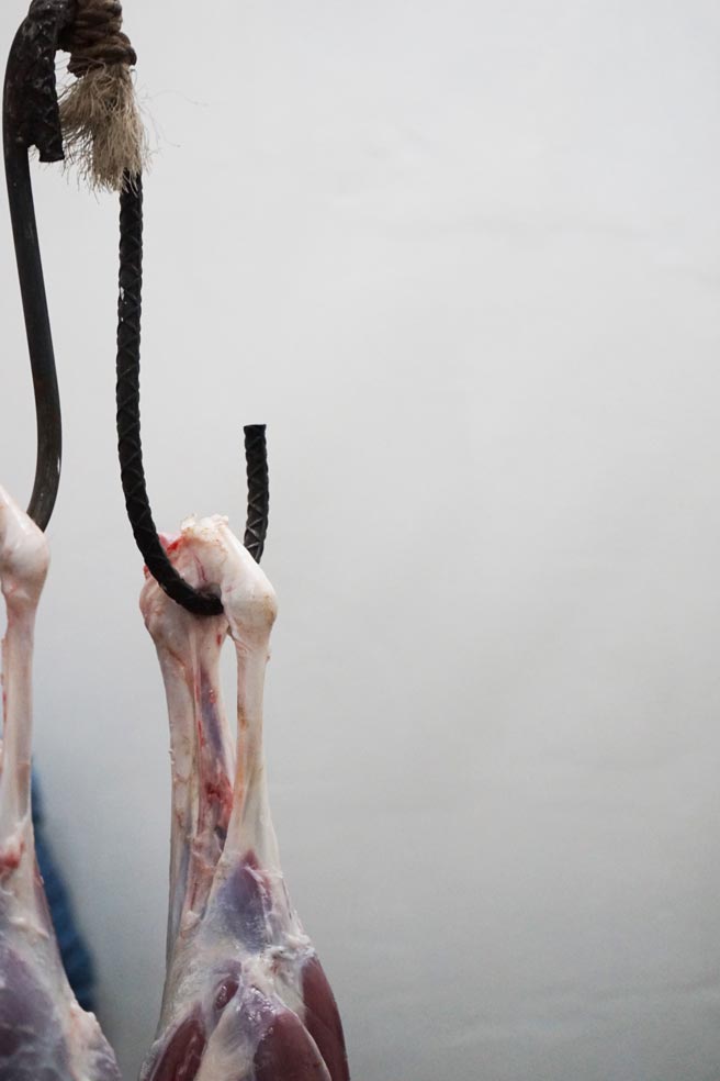 Verlo degollar, desollar, quitarle las vísceras y cortar el borrego es una lección de paciencia y meticulosidad, que dura alrededor de 45 minutos. El animal alimenta. El forcejeo es silencioso, la entrega involuntaria. ¿Qué hay después de los músculos, las tripas, la piel y la sangre? Su cuchillo conoce el método sin juzgar ni moralizar. La carne espera. No es algo que se coma diario, todo se aprovecha.