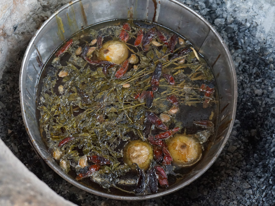 El consomé como acompañamiento es otra de sus características importantes: una olla con epazote, garbanzos, chiles morita y arroz recibe los jugos del cocimiento del animal, que tarda entre 10 y 12 horas. Este tipo de sabores es el umami mexicano que resulta de la lenta cocción.