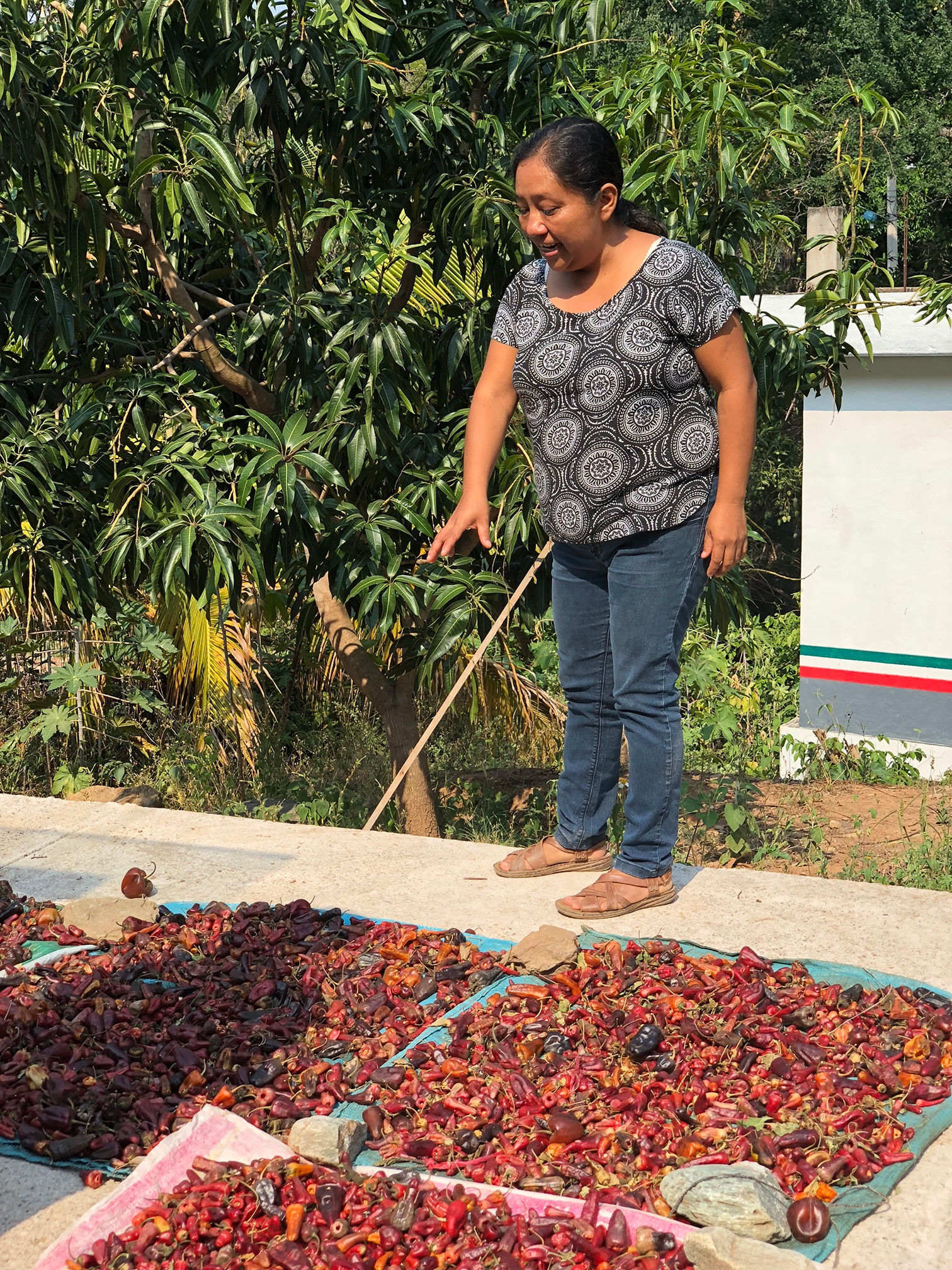 Tuvo que congelar toda la pasta de mole que tenía para vender en ferias y entregas. La gente busca abastecerse de lo indispensable frijol, azúcar, leche y huevos, y este insumo no es prioritario. También se le quedaron unas ciruelas que no pudo enviar porque no hay corridas de transporte hacia las ciudades. Lo que sí le compraron dentro de su población fue chile caldo, uno de sus platillos estrellas, que lleva chilhuacles rojo, amarillo y negro (de los cuales no hubo mucha producción por plagas y falta de lluvia).