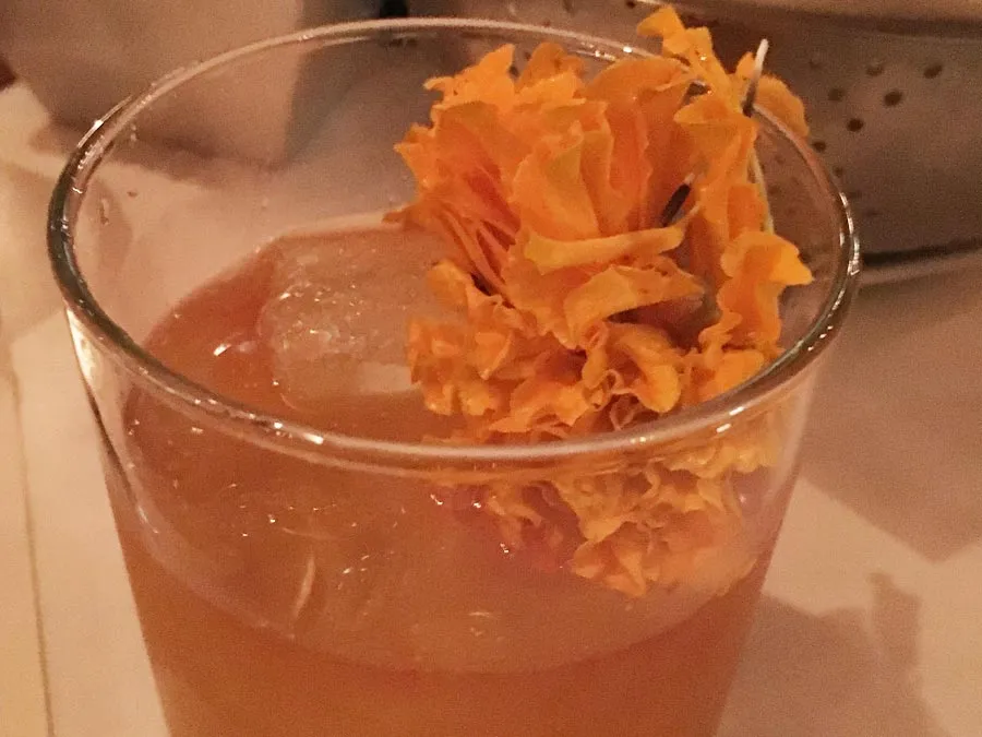 - Bitters de angostura y flor de cempasúchil (*si no la encuentras puedes usar jamaica).