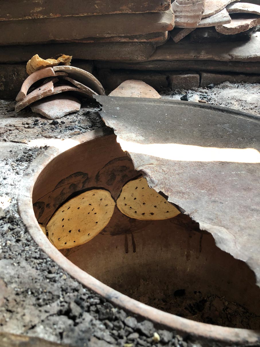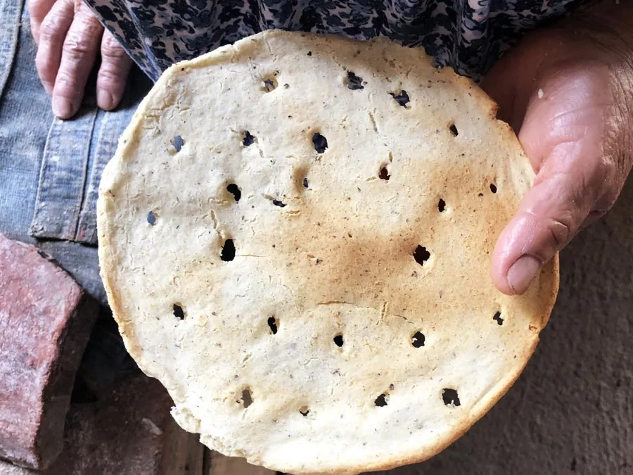 Esta bóveda no solo sirve para hacer totopos, sino memelas: esas tortillas delgadas y suaves, otro tipo de alimento de maíz más gordito, igualmente delicioso y también con hoyitos más grandes.