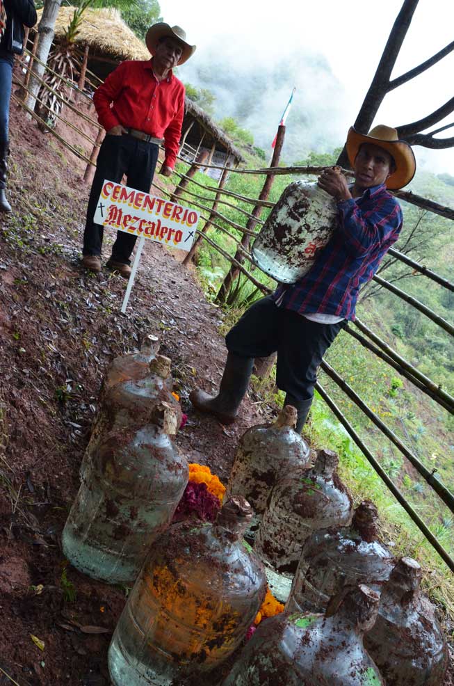 Miguel contó que este acto del entierro comenzó hace siete años, cuando un campesino que trabajaba la tierra golpeó algo con el arado en el camino y encontró un recipiente de vidrio con un mezcal que era un mágico descubrimiento. Guadalupe lo probó y notó que no sabía igual a otros, así que decidió meter a la tierra garrafas mezcaleras con sus diferentes variedades de mezcal y el resultado fue asombroso. Hoy en día se puede asistir a este convite.