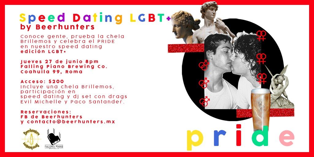 Y si andas con ganas de pre- fiesta antes de la marcha LGBT+ habrá un Speed Dating LGBT+ el 27 de junio de 2019, a las 20:00 horas, en Falling Piano Brewing Co. Beerhunters organiza este evento en colaboración con esta cervecería chilanga. La idea es que conozcas nuevas personas (ligues o no, siempre es buena idea) y pruebes esta chela. Habrá un DJ set con drags.