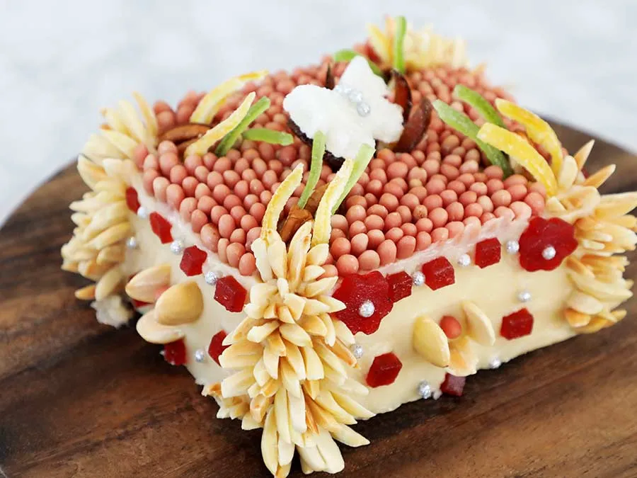 Ya no se hacen esos festejos con trajes rimbombantes y engolados, y está en extinción el saber hacer de los antes colimotes, pero las cocineras que siguen confeccionándolos están orgullosas. Encontré el de Dolores Márquez y su historia en la web así como el de Cecilia Calderón, que se presentó en la inauguración del Festival de cocina colimota en la CDMX (en el cual también podrás comer pozole seco). Este lleva pan mamón envinado que se coloca en cuatro capas, lleva fruta seca y mantequilla acremada con azúcar glas y vainilla.