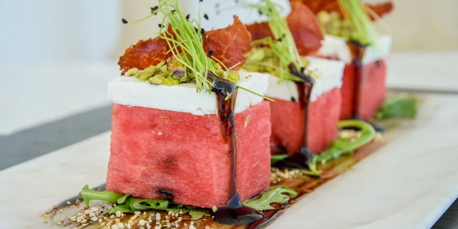 Checa esta receta para preparar una ensalada de sandía con queso feta y hojas de menta que nos compartió el chef Giannis Hatziandreou del Archipelagos Hotel en Mykonos, Grecia.