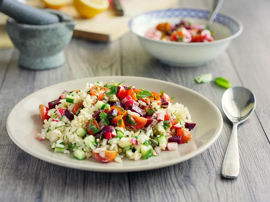 Checa esta receta perfecta para comer rico y sano: la ensalada fresca de arroz es fácil de hacer.
