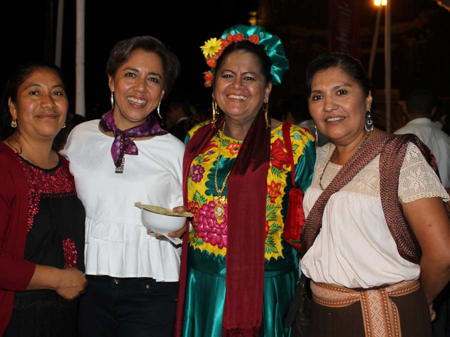 Aurora Toledo del favorito restaurante Zandunga, con su majestuosidad y sonrisa habitual, presentó minilla de jaiba, cochito horneado y otros manjares; Evelia Reyes, cocinera excepcional en Fuensanta, local familiar con tres décadas de existencia, llevó antojos como las empanadas de verde y amarillo; y Deyanira Aquino, con su garbo y talento enorme, nos consintió con tamales de cambray, estofado y garnachas.