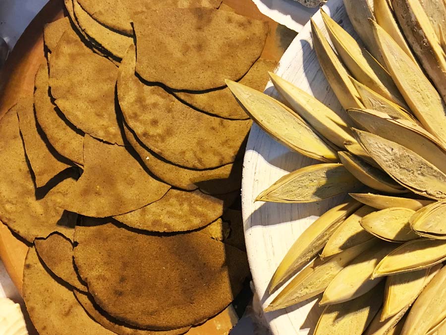 Fueron hallazgo las tostadas de corozo que se realizan con la mezcla del bagazo de esta palma, masa de maíz y azúcar que se tuesta al comal; sus tichindas (un mejillón de los manglares) en mole amarillito; y también el mole de pescado, elaborado con barrilete negro asado a las brasas y un guiso con chiles costeño y rojo, orégano, sal, pimienta, ajo y cebolla.
