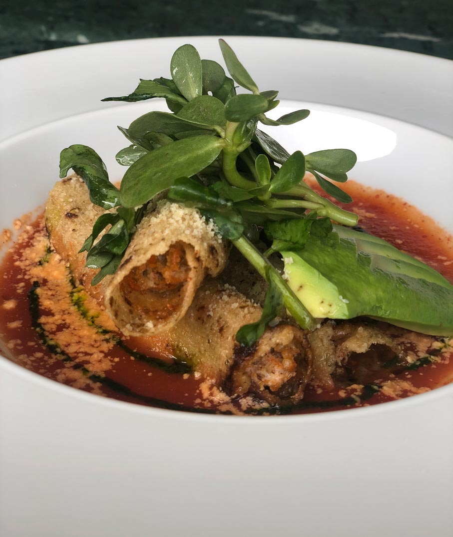 El segundo es parte de la importancia que se le da a los lácteos en Nayarit. Hay queso de la sierra y fresco, así como jocoque, requesón y más. Este último es muy querido y consumido en distintas preparaciones que van desde un bolillo con miel, hasta estos tacos en los que se mezcla con zanahoria, apio, pimiento morrón verde, sal y pimienta. Llevan caldillo de jitomate, aguacate y queso seco espolvoreado.