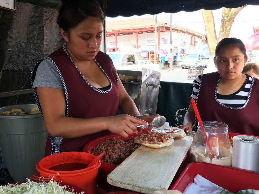 En la actualidad el exquisito antojo se prepara untando una telera con frijoles, queso de puerco, cebolla, repollo (col), chile perón (manzano) y salsa roja más la tostada con ese guiso frío similar a una carne tártara. El disco de maíz está frito en manteca y hay dos momentos en los cuales se deja al horno: antes y después de la tostada.