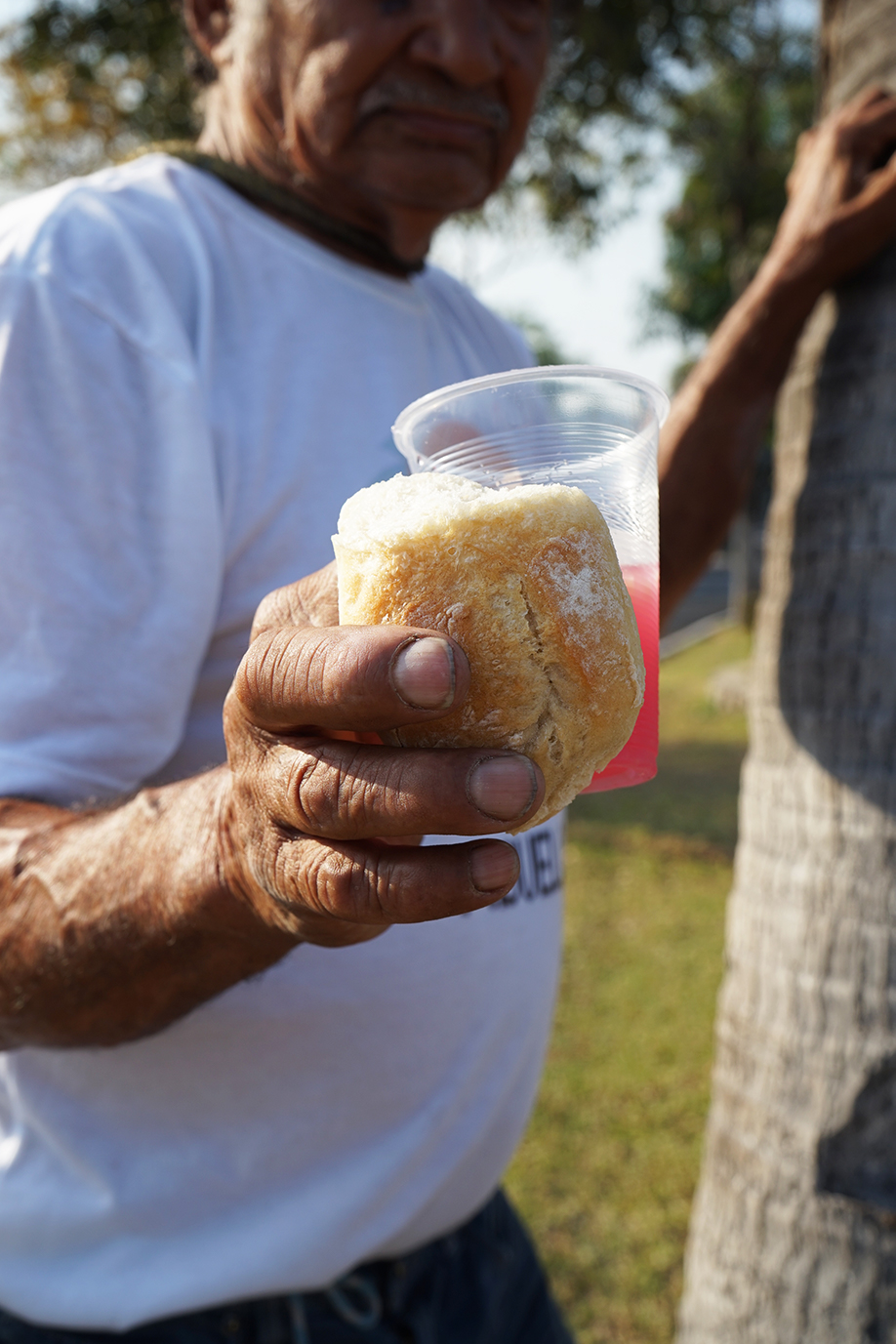 Para Leo, el desayuno colimote está compuesto por tuba y birote, un pan salado similar al bolillo. Comparte un vaso de la tuba fresca y de la que se tiñe con betabel y que lleva pepino en pedacitos. Otro ingredientes que se le suelen agregar son cacahuates o nueces en trozos. De inmediato, el cuerpo se aclimata: es como si este supiera que los brebajes de ahí tienen su lógica de existencia.