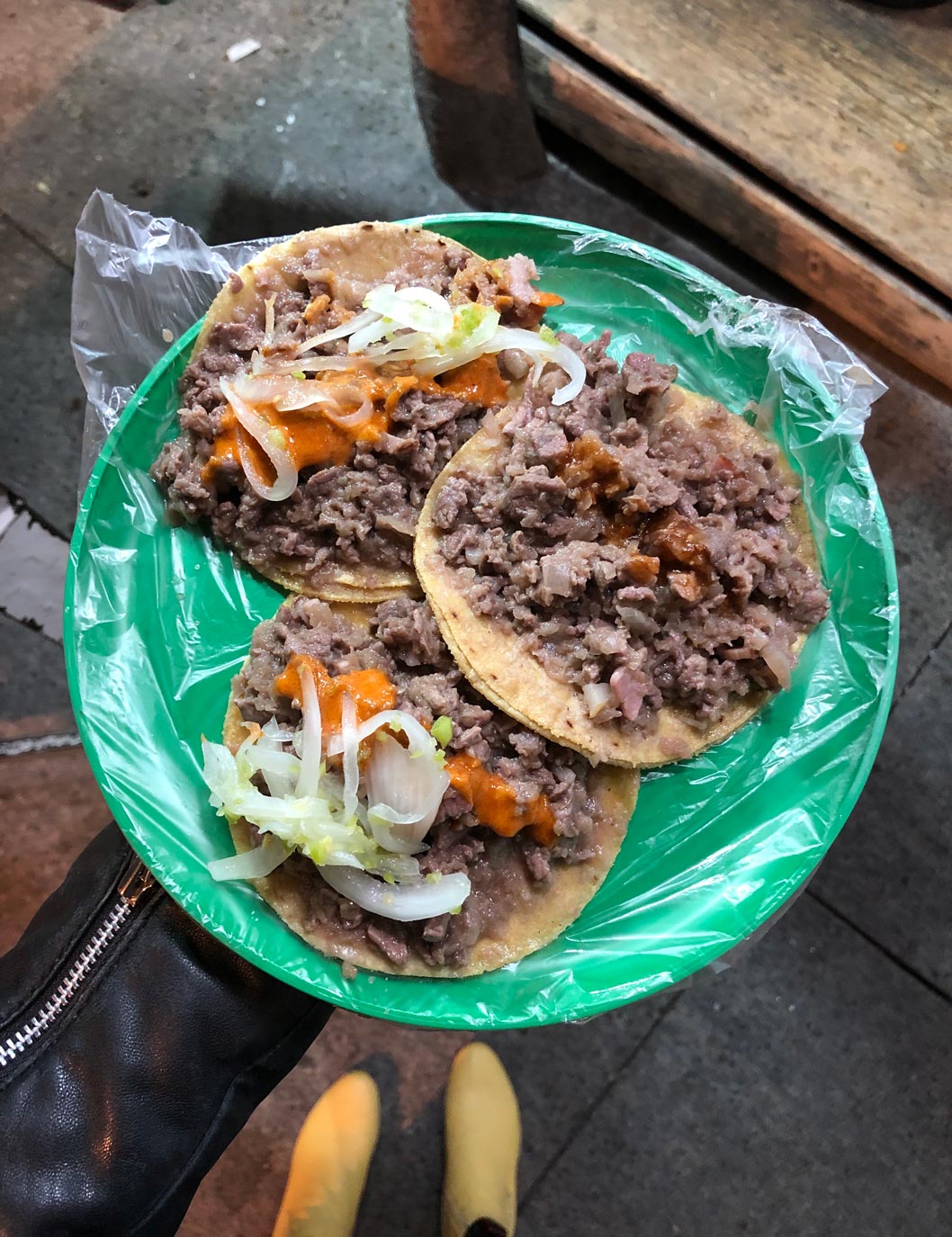 Mi memoria más antigua con los tacos es cuando me daban esos de sal en la tortillería, hechos rollito, en esa técnica que es cultura también. Los de frijoles “chinitos” —término habitual en Veracruz cuando estos tienen grasa, ya sea de la manteca o el chorizo— de mi abuela Amparo con queso y salsa, los de pescado a la parrilla que hacíamos en la playa de Tecolutla en Año Nuevo en familia; los que me han compartido campesinos en la siembra en Oaxaca o Tlaxcala, los de tripa del mercado de Xochimilco, después de ir a echar pulques universitarios a El Templo de Diana o Las Duelistas son ejemplos que hablan de mis “horas taco” iniciales entre lo extraordinario de lo ordinario.