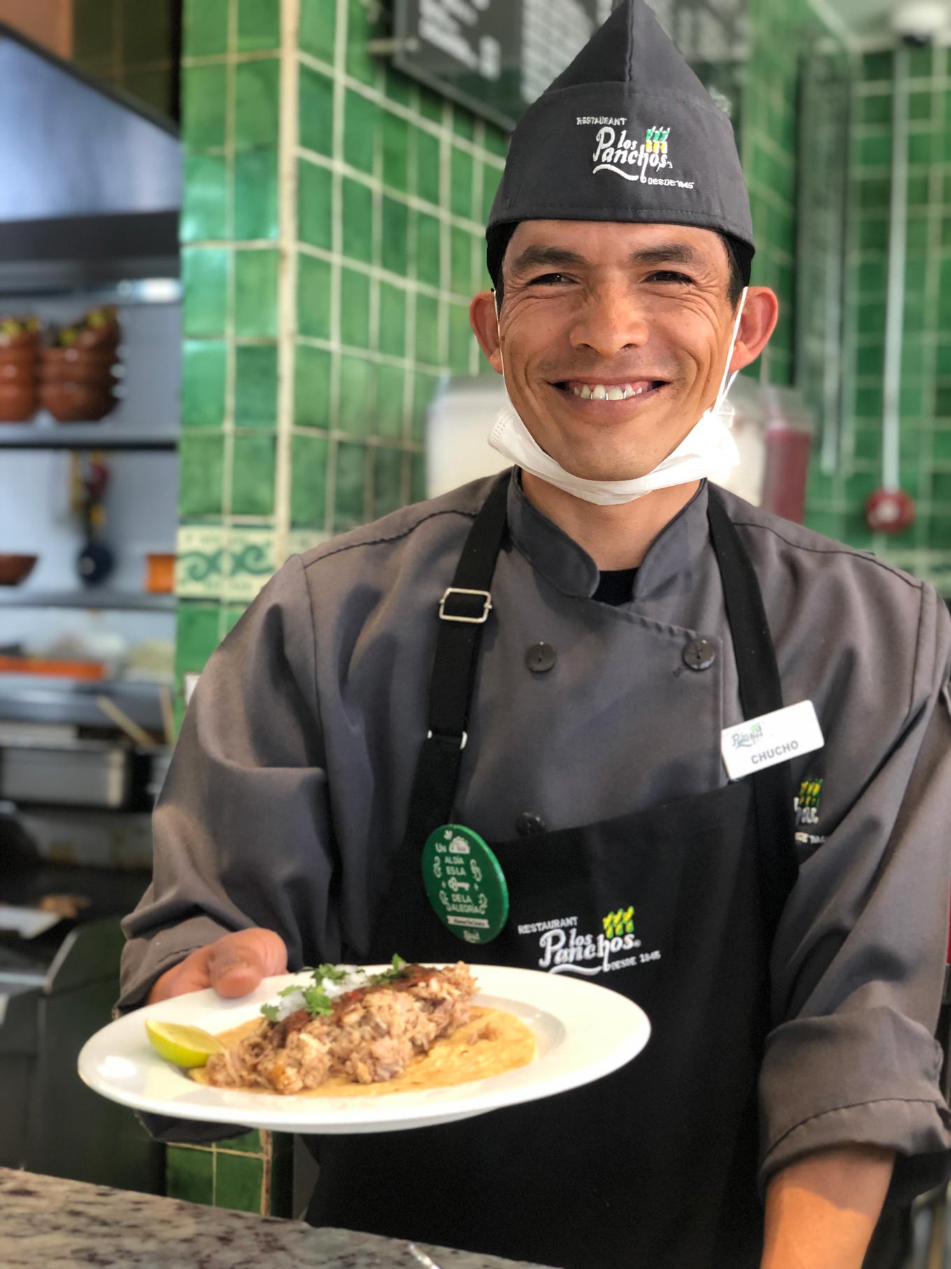 Jesús Arzate es un taquero originario de Michoacán, quien trabaja en Los Panchos en la ciudad de México desde hace 16 años. Él sabe que no todos trabajan con el mismo gusto y, en lo personal, busca complacer a su cliente y a sus compañeros, porque él aprendió de otros taqueros consagrados de otros lares de la República. Además de dominar las partes del cerdo para un taco de carnitas en su punto, los sirve con una salsa especial, para la que mezcla las de la casa (la de chile de árbol, la de habanero y la cocida), con salsa inglesa y otros secretos. Es su aporte a los comensales.