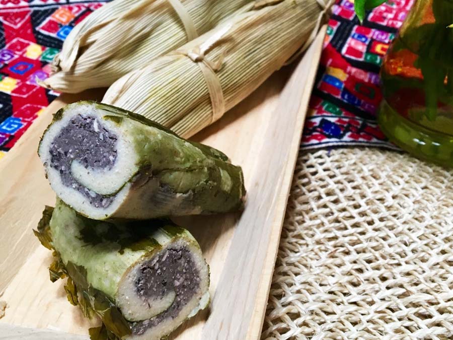 Esta preparación consta de una masa a modo de tortilla que se extiende sobre una hoja santa. Encima de ella se coloca pasta de frijol y pepita de calabaza. “Los más comerciales añaden cabezas de camarón molido”, agregan. Se enrolla y envuelve en hoja de maíz y se cuece al vapor. “El resultado es una espiral aromática, de sabor exquisito e intenso”, dicen.
