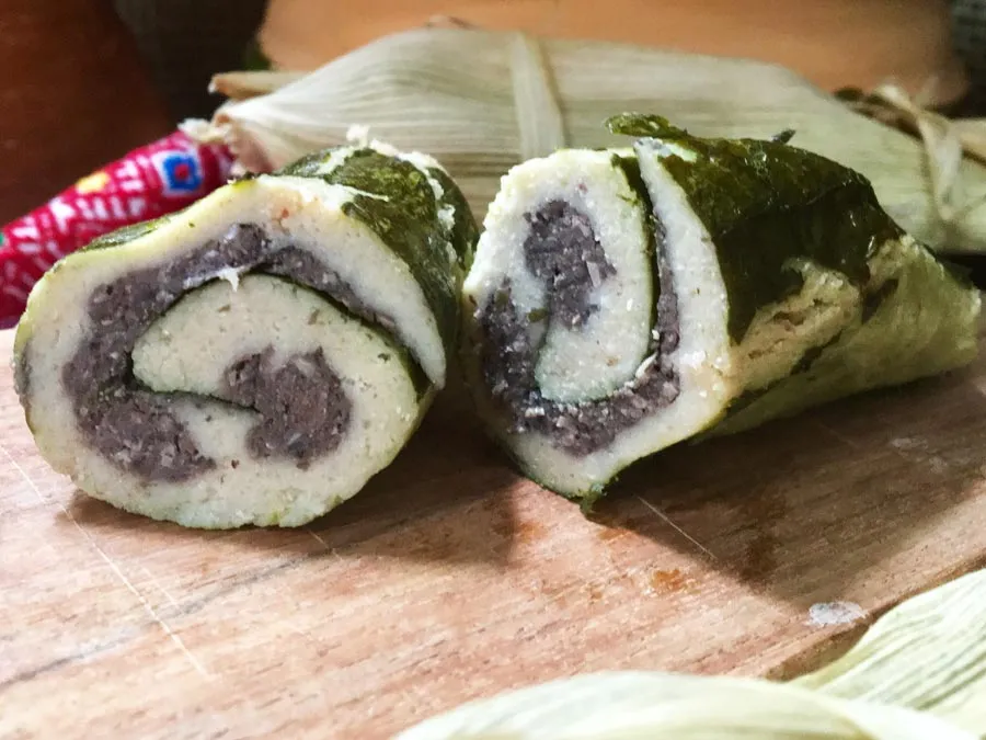 Esta preparación consta de una masa a modo de tortilla que se extiende sobre una hoja santa. Encima de ella se coloca pasta de frijol y pepita de calabaza. “Los más comerciales añaden cabezas de camarón molido”, agregan. Se enrolla y envuelve en hoja de maíz y se cuece al vapor. “El resultado es una espiral aromática, de sabor exquisito e intenso”, dicen.
