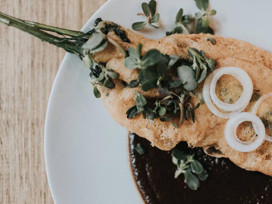 El nuevo proyecto del chef de Intro está dentro de un hotel boutique y ahí se sirven desde nostálgicos antojitos hasta recetas familiares poco conocidas, con aires renovados y adaptaciones para los comensales actuales. Algunos de los que puedes elegir son lechón en pipián verde, huazontles rellenos de queso fresco de cabra sobre mole de chile pasilla y, por temporada, las enchiladas agustinas, que van rellenas del picadillo de los chiles en nogada y bañadas con mole, además de la popular receta de chiles en nogada.
