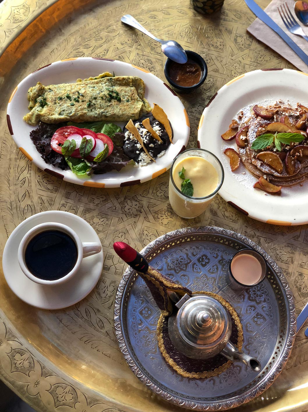 Además de probar cous cous (mi favorito es el de cordero y vegetales) o la musaka (plato gratinado con berenjena), anímate a ir por la mañana: su omelette de hierbas, los hot cakes con canela y manzana, el café turco o el té chai y el lassi de mango son buenas formas de empezar el día (y variarle a tu dieta ).