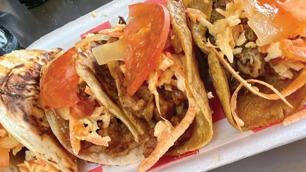 El nombre ya te dice mucho: Tacos Atarantados. Esta taquería se ha vuelto un fenómeno viral, y con justa razón. Su propuesta es simple pero revolucionaria: usar carne de chicharrón de la Ramos en lugar del tradicional trompo. El resultado es un taco de trompo de chicharrón de la Ramos que sabe a gloria. Y si eso no fuera suficiente, también ofrecen tacos de papa con arrachera, elotes y sus famosas “papas con carne”. El nombre “Atarantados” viene de la costumbre de sus dueños de gritar “la cuenta, atarantado” a los clientes, un giro de humor que le ha dado un sello de autenticidad a la marca. Si eres de los que buscan lo diferente y no temes a las combinaciones audaces, este es tu lugar.