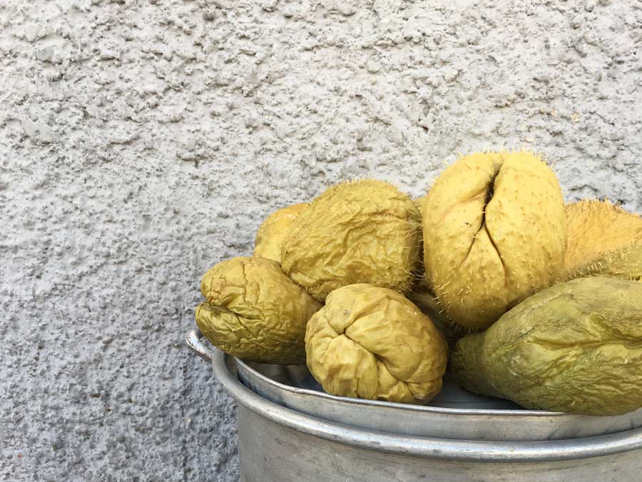 No lo subestimen. Es humilde pero enorme. Le crecen pelitos puntiagudos en lugar de barbas. Aunque parece que solo es agua, tiene un delicado sabor que hace babear. Se le ve en vaporeras en la parte no establecida del mercado, listo para comer. El chayote es versátil: se le puede consumir cocido y a mordidas, crudo y rallado para acompañar el pescado zarandeado como los nayaritas lo usan y y hasta en dulce con miel de piloncillo. Es de mis alimentos favoritos por franco y sin pretensiones.