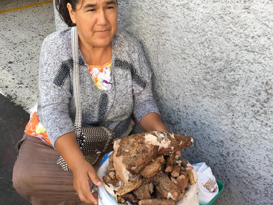 Ernestina Mercado se levanta diario a las cuatro de la mañana para poner a hervir con sal este tubérculo que se consume con fines alimentarios y medicinales en el Nayar. Su uso más común es evitar cólicos menstruales. Cuesta 100 pesos el kilo. Su sabor es parecido al de una yuca, con la consistencia de un camote. En el Recetario Huichol de Nayarit de la Colección de Cocina Indígena y Popular, se menciona que este alimento lo comen los huicholes de junio a septiembre.