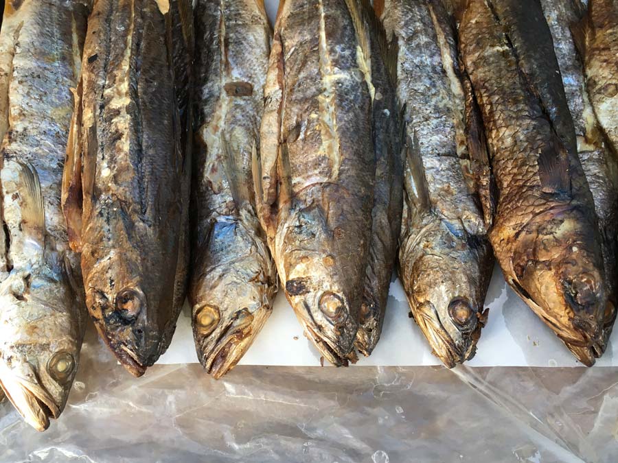 Si bien hay una sección de pescados crudos al interior (que no son los más frescos del condado), estas lisas a pie de calle se veían apetitosas. Costaban desde 25 hasta 50 pesos la pieza según el tamaño y tenían mejor ver, a pesar de que son fuereñas. La manera de conservar alimentos del mar en nuestro país sorprende. En casi todos los mercados cercanos a costas hay alimentos secos o tatemados que acompañan a los recién pescados (o congelados).
