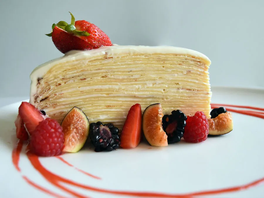 La chef Aiko Torga y su equipo de cocina se suman a la ruta con un pastel mil hojas de crepas (que ilustra esta nota).